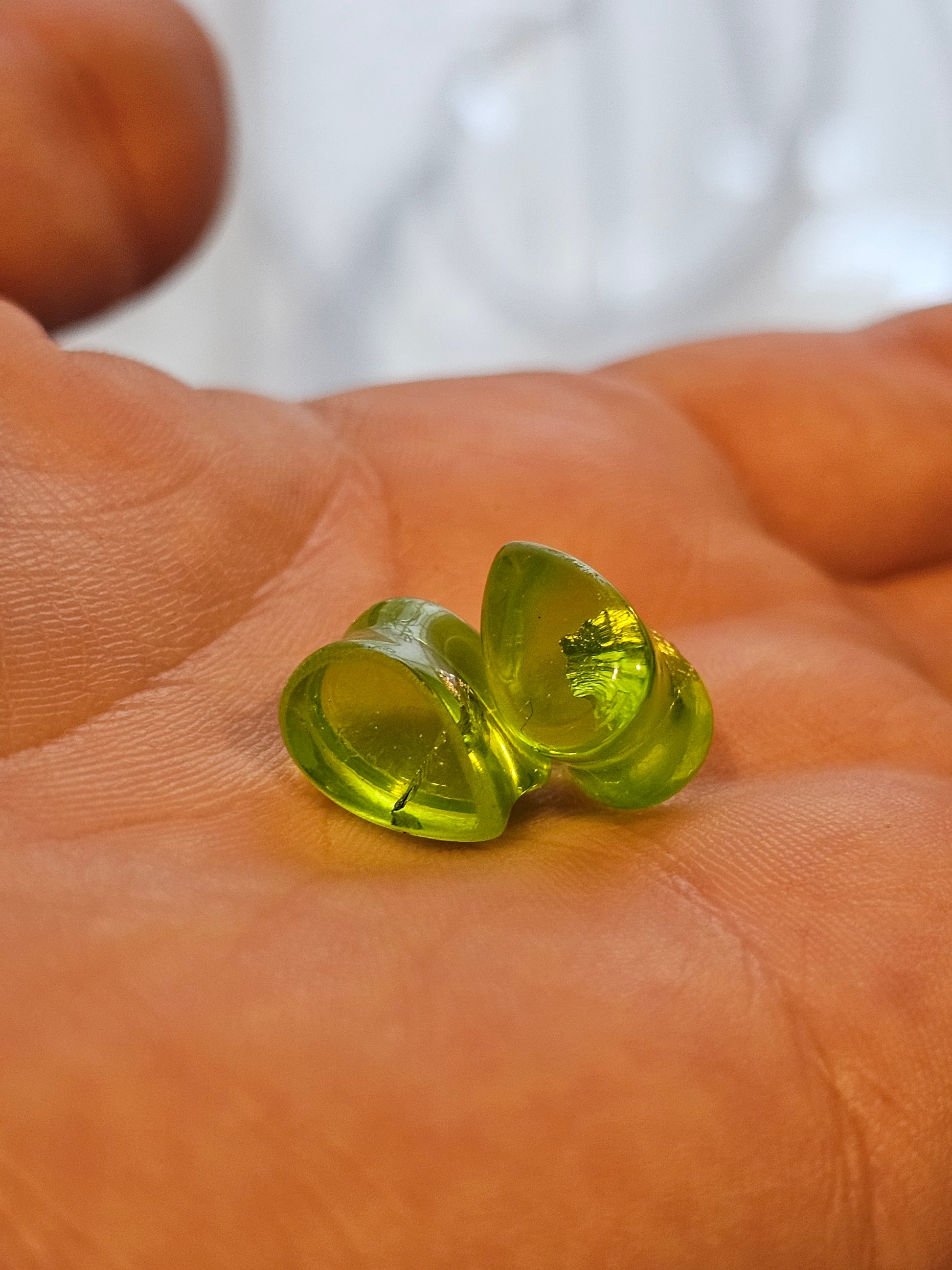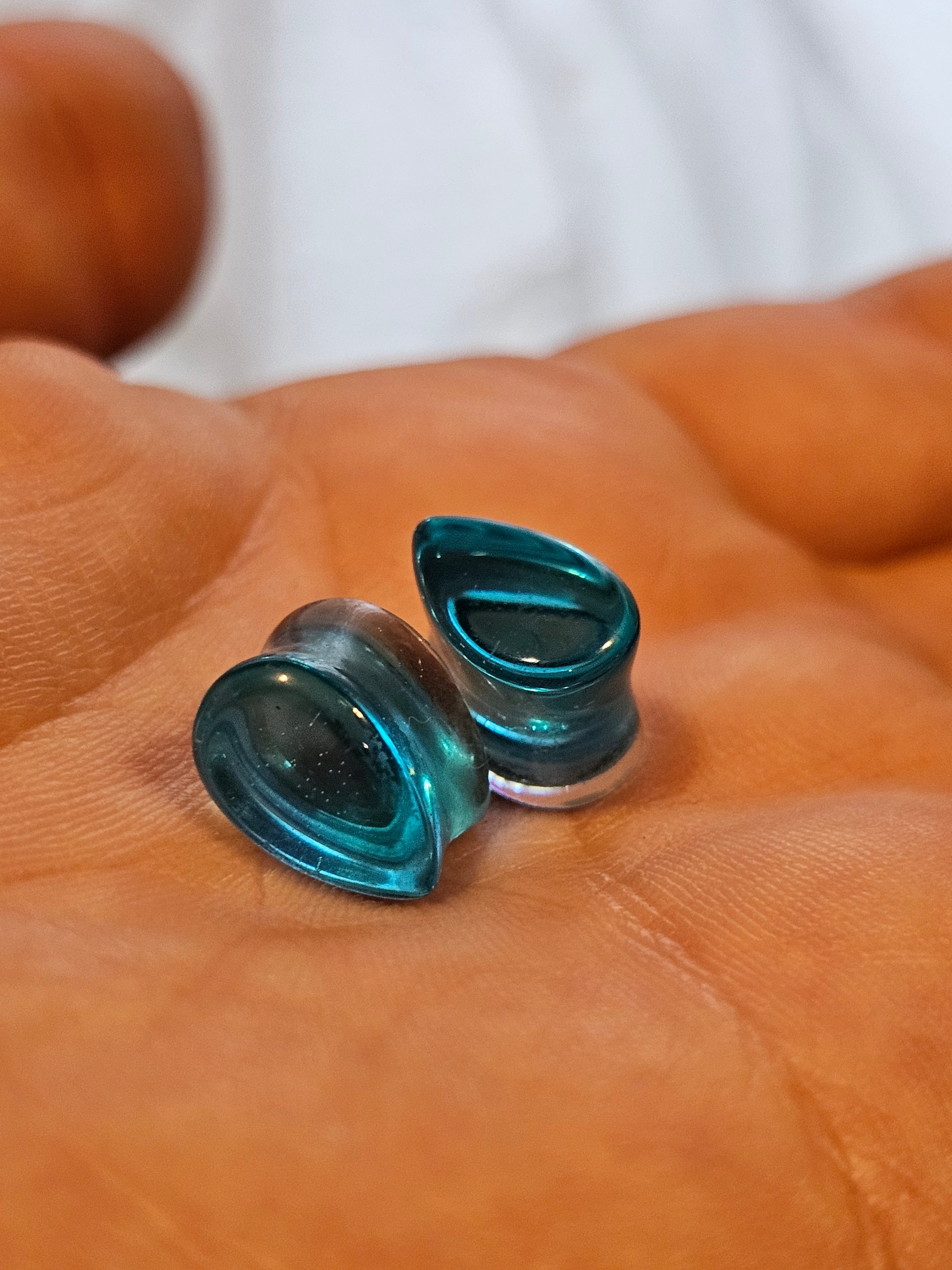 Tear Drop shaped plug earrings for stretched ears. Light weight and comfortable to wear. Made with epoxy resin. Available in sizes 2G to 5/8 inch. Product colors may vary slightly.